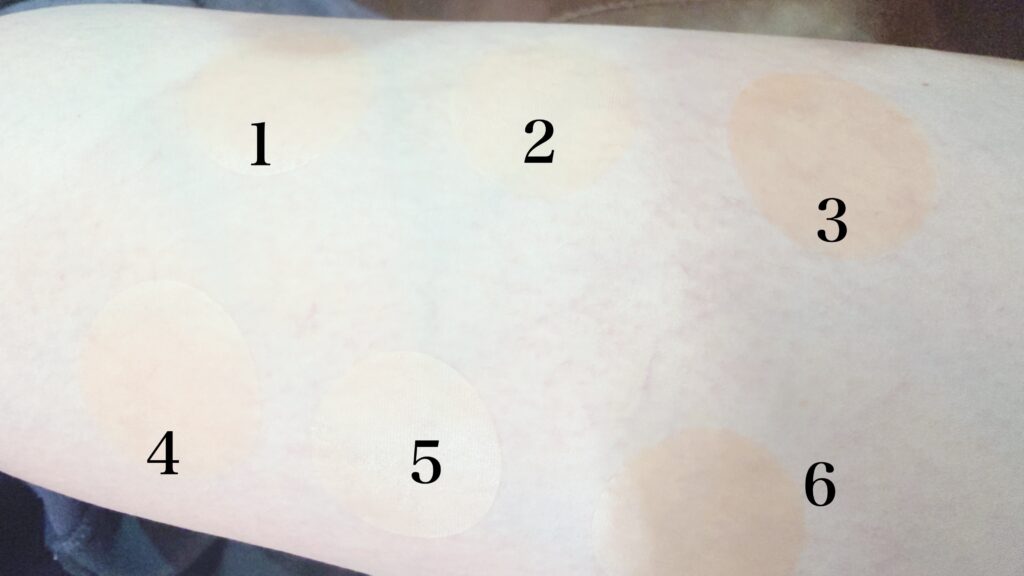 初回は右足の太ももに6枚全てを貼ってみた。